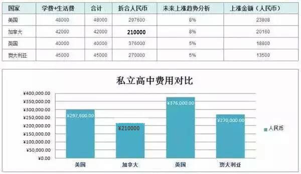 以中国学生经常申请的私立寄宿中学(排名在前10%),生活费取平均值为依据,并且根据私立寄宿中学特点数值有一定程度上浮。