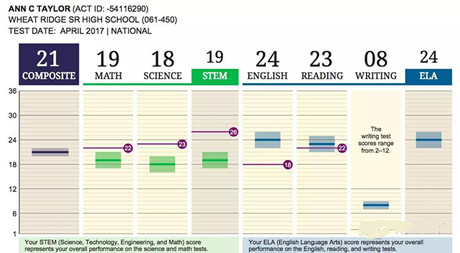 成绩单通过成绩分析考生的兴趣爱好和未来大学专业和职业的匹配度以及在本次考试的总分下分析考生的职业准备程度。职业生涯准备指数(Progress Toward Career Readiness Indicator)这个测量标准会帮助学生了解自己的职业准备过程,并帮助教学者有效指导自己的学生规划未来职业方向。这个职业生涯准备指数还可以提供一个对于ACT National Career Readiness Certificate?(一个基于测试的能够证明未来职业基础工作技能的资格证书)的未来表现的预测。