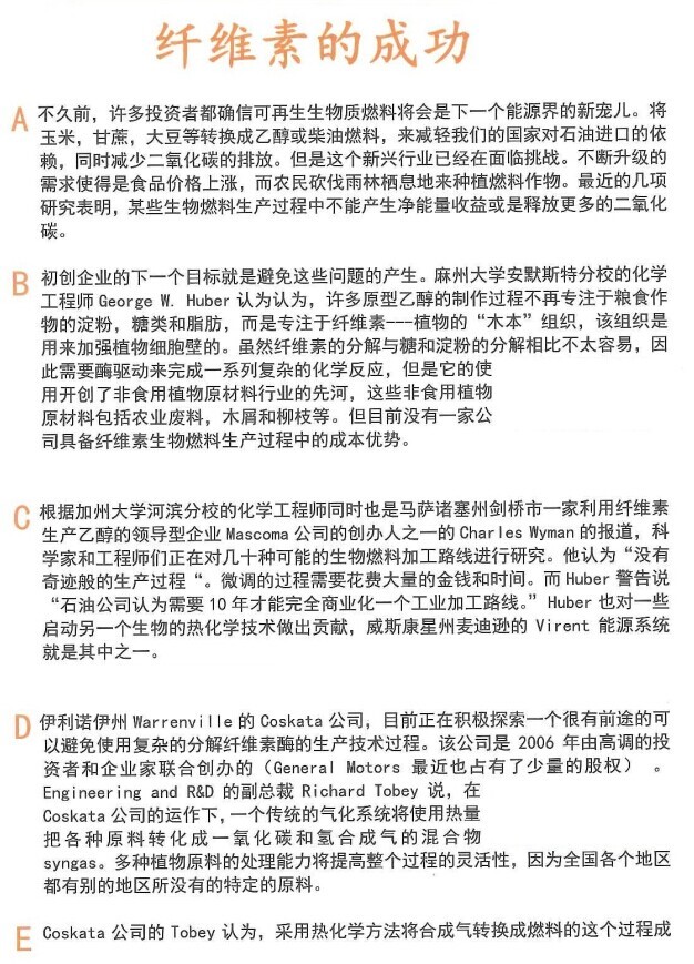 H段:植物纤维素制造乙醇前景广阔 |