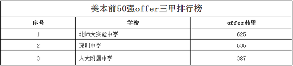 虽然在TOP50总榜单里面,北京四中名列榜首,逾9成申请留学者都最后都出国了。但是如果美国名列前茅的高校发出的offer来论,排在第一位的是南京外国语学校;2015年,南京外国语学校295名毕业生当中,拿到了美国前十所名校最多的offer,达到了28份,其中常春藤名校有17份offer。