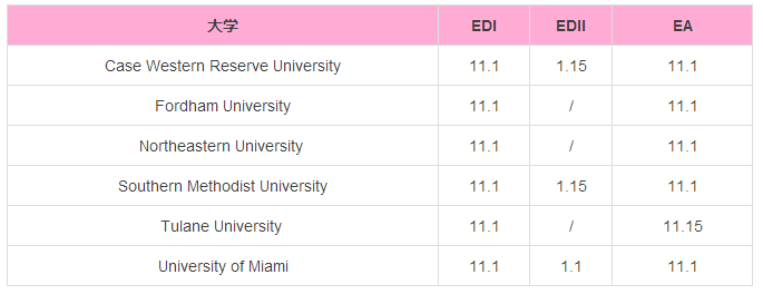 * TOP10-50之间既有EA申请,又有ED申请的大学